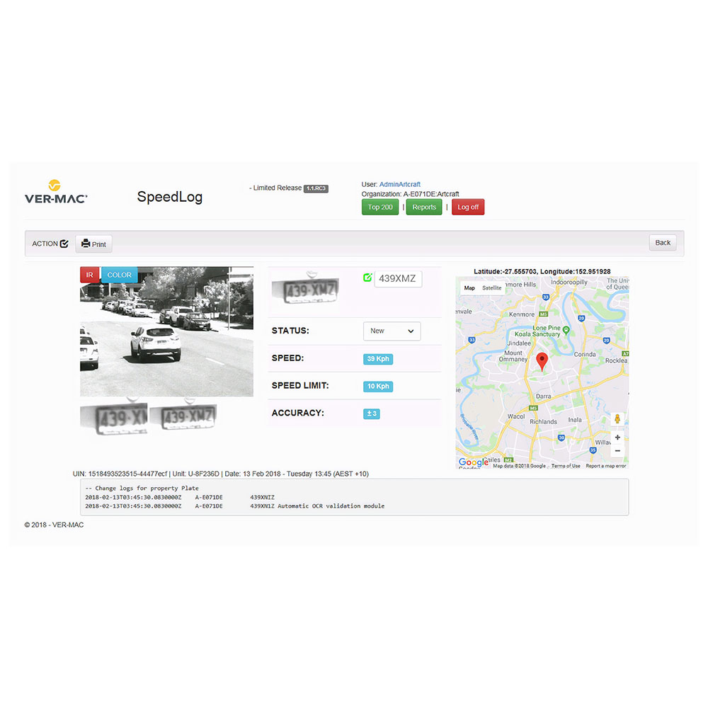 - View the unit, date/time, logged speed, plate number, plate picture and status at a glance